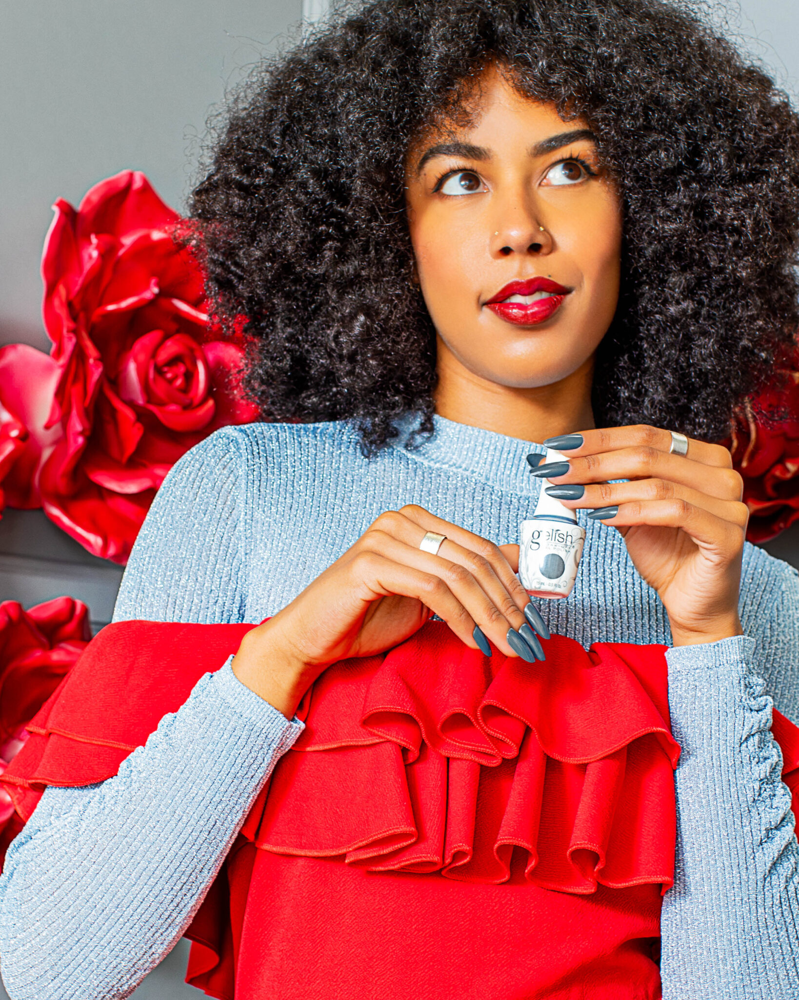 Gelish Blue Moon Bloom er den perfekte farve til kunder, der elsker kølige nuancer med et strejf af glamour – en blå shimmerfavorit, der giver neglene et sofistikeret og strålende udtryk